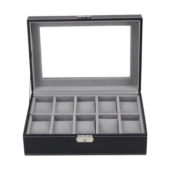 2/6/10/12 Girds Leather/Carbon Fiber Watch Box Jewelry Storage Box Organizer for Earrings Rings Bracelet Display Holder Case